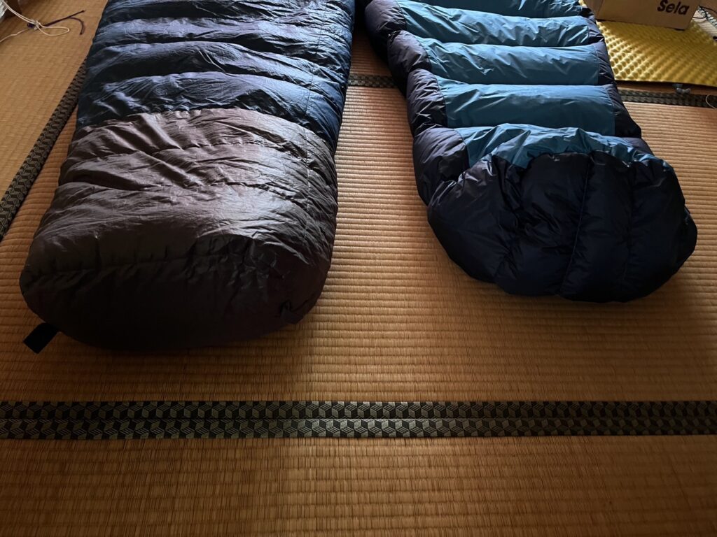 これは運命だ…ということで、さっそく手持ちのシュラフと並べて比較してみました!